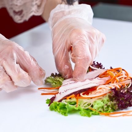 - they can be often used for light-duty tasks that require frequent glove changes such as food service work, salad and sandwich preparation, deli meat slicing and other food applications.